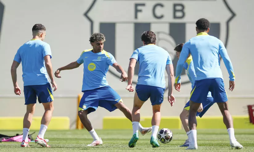 text_fieldsബാഴ്സലോണ ടീം പരിശീലനത്തിൽ