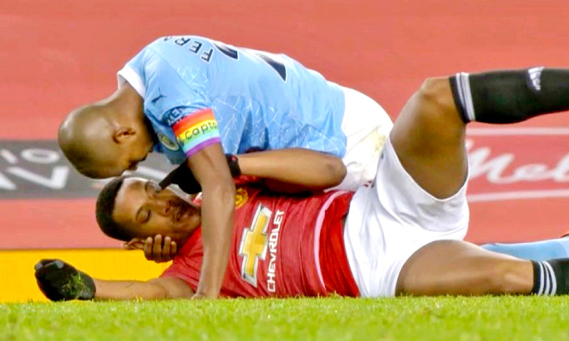 text_fieldsമാഞ്ചസ്റ്റർ യുനൈറ്റഡിെൻറ ആൻറണി മാർഷലും സിറ്റിയുടെ ഫെർണാണ്ടീന്യോയും കളിക്കിടെ വീണപ്പോൾ