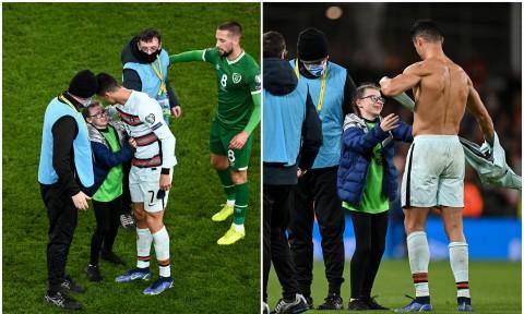 കഴിഞ്ഞദിവസം അയർലൻഡ്-പോർചുഗൽ മത്സരശേഷം അഡിസൺ വെലാൻ എന്ന 11കാരിയാണ് റൊണാൾഡോക്കരികിലേക്ക് ഓടിയത്. ഇടക്ക് സുരക്ഷ ഉദ്യോഗസ്ഥർ തടഞ്ഞെങ്കിലും കുട്ടി തെൻറ പേര് വിളിക്കുന്നത് കേട്ട് ശ്രദ്ധിച്ച സൂപ്പർതാരം അവളെ തെൻറ അടുത്തേക്ക് വിടാൻ നിർദേശിച്ചു. ഇതോടെ ഓടിയെത്തിയ അഡിസണിന് റൊണാൾഡോ ജഴ്സിയൂരി നൽകി. തന്നോട് ചേർത്തുപിടിക്കുകയും ചെയ്തു.