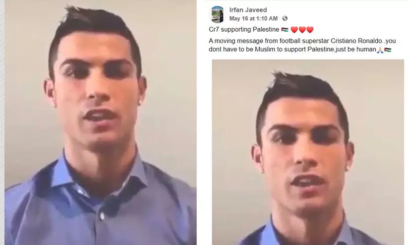 text_fieldsഅന്താരാഷ്ട്ര ഉടമ്പടികളും നിയമങ്ങളുമെല്ലാം കാറ്റിൽപറത്തി ഇസ്രായേൽ നടത്തുന്ന വ്യോമാക്രമണത്തിലും ഉപരോധത്തിലും വലയുന്ന ഫലസ്തീൻ കുട്ടികൾക്ക് പോർചുഗീസ് സൂപ്പർതാരം ക്രിസ്റ്റ്യാനോ റൊണാൾഡോ പിന്തുണ പ്രഖ്യാപിച്ച തരത്തിലുള്ള വിഡിയോ ഏതാനും ദിവസങ്ങളായി സമൂഹമാധ്യമങ്ങളിൽ വ്യാപകമായി പ്രചരിക്കുന്നുണ്ട്. നിരവധി പേർ ഈ വിഡിയോ പങ്കുവെക്കുകയും താരത്തെ അഭിനന്ദിക്കുകയും ചെയ്തിരുന്നു.