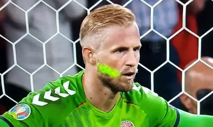 നിർണായക പെനാൽറ്റിക്ക് മുമ്പ് ഡാനിഷ് ഗോളി ഷ്മിഷേലിെൻറ മുഖത്ത് 'ലേസർ ആക്രമണം'; ഇംഗ്ലീഷ് ആരാധകനെതിരെ രോഷം