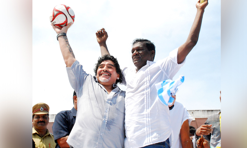 ലോകകപ്പ് ടി.വിയിൽ കാണുന്ന നാൾ തൊട്ട് ഉള്ളിൽ കൊണ്ടുനടക്കുന്ന മോഹം. മറഡോണയെ ഒന്ന് കാണണം, പറ്റിയാലൊന്ന് തൊടണം. 2002 ലെ ജപ്പാൻ-കൊറിയ ലോകകപ്പിനു പോയപ്പോൾ ചില്ലുകൂട്ടിന് പുറത്തുനിന്ന് പെലെയെ നോക്കിയിട്ടുണ്ട്. പക്ഷേ, മറഡോണയെ കണ്ടിട്ടില്ലായിരുന്നു. അദ്ദേഹം കണ്ണൂരിൽ വന്നപ്പോൾ പരിപാടിയുടെ തലേന്നു തന്നെ ഞങ്ങൾ അവിടെയെത്തി. ഞാനും ഷറഫ് സാറും (ഷറഫലി) ജോപോളും കുടുംബസമേതം. ആസിഫ് സഹീറുമുണ്ടായിരുന്നു കൂടെ. മറഡോണയെ പരിചയപ്പെടാനും ഫോട്ടോയെടുക്കാനുമെല്ലാം പ്ലാൻ ചെയ്ത് ഞങ്ങൾ ഹോട്ടലിലെത്തി. പക്ഷേ, പുള്ളിക്കാരൻ പിടിതന്നില്ല. വേറേതോ മൂഡിലായിരുന്നു. ശരിക്ക് കാണാൻപോലും പറ്റിയില്ല. നട്ടപ്പാതിരാക്കും ഹോട്ടലിന് പുറത്ത് ആരാധകരുണ്ടായിരുന്നു.