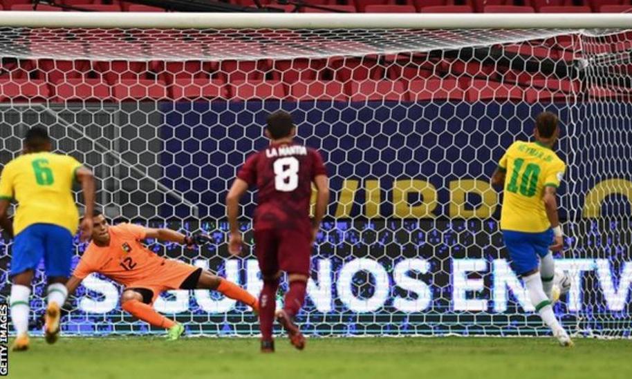 ഒരു ഗോൾ നേടുകയും ഒന്നിന് അസിസ്റ്റ് നൽകുകയും ചെയ്ത് ഉടനീളം മനോഹരമായി കളി നയിച്ച നെയ്മറിനൊപ്പം മാർക്വിഞ്ഞോസും ബർബോസ അൽമേഡയുമായിരുന്നു സ്കോറർമാർ. 23ാം മിനിറ്റിൽ പി.എസ്.ജി താരം മാർക്വിഞ്ഞോസായിരുന്നു ഗോൾവേട്ടക്ക് തുടക്കമിട്ടത്. കോർണർ കിക്ക് ക്ലിയർ ചെയ്യാതെ വിട്ട വെനസ്വേല പ്രതിരോധത്തെ കാഴ്ചക്കാരാക്കി അനായാസം പന്ത് വലയിലെത്തിക്കുകയായിരുന്നു. പിന്നെയും മൈതാനം ഭരിച്ച ടീമിനായി 67ാം മിനിറ്റിൽ ലഭിച്ച പെനാൽറ്റി ഗോളാക്കി നെയ്മർ ലീഡുയർത്തി. ഡാനിലോയെ വെനസ്വേല താരം കുമാന വീഴ്ത്തിയതിനായിരുന്നു പെനാൽറ്റി. ഗോൾ നേടിയതോടെ ടീമിനായി 77 ഗോൾ നേടി റെക്കോഡ് പുസ്തകത്തിലുള്ള ഇതിഹാസ താരം പെലെക്കൊപ്പമെത്താൻ നെയ്മറിന് ഇനി അകലം 10 ഗോൾ മാത്രം. കളി അവസാനിക്കാൻ മിനിറ്റുകൾ ശേഷിക്കെ നെയ്മർ നൽകിയ ക്രോസ് ബർബോസ വലയിലെത്തിച്ചതോടെ ലീഡ് മൂന്നായി. 2019ൽ കോപ ചാമ്പ്യന്മാരായ സാംബ ടീം ഇതോടെ കിരീട യാത്ര ഗംഭീരമായി തുടങ്ങി.