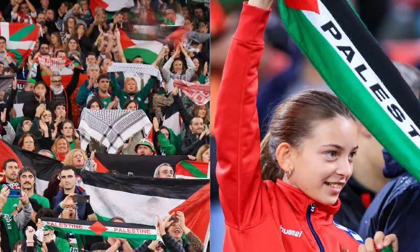 സ്പെയിനിൽ ഗസ്സക്ക് പന്തുതട്ടി ഐക്യദാർഢ്യം ഫലസ്തീനും ബാസ്ക് കൺട്രി ടീമും തമ്മിലായിരുന്നു സൗഹൃദ മത്സരം