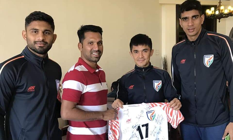 അബൂദബിയിൽ വെച്ച് ഛേത്രിയും അനസും ഗുർപ്രീതും ചേർന്നാണ് അന്നിത് കൈമാറിയത്. ഇടുക്കി പെട്ടിമുടിയിലെ ഉരുൾപ്പൊട്ടലടക്കം പ്രകൃതി ദുരന്തത്തിന് ഇരയായവർ, കോവിഡ് പ്രതിസന്ധിയിൽ കേരളത്തിൽ കുടുങ്ങിപ്പോയ വിദേശ ഫുട്ബാൾ താരങ്ങൾ തുടങ്ങിയവർക്ക് ഒരു കൈ സഹായമാണ് ലേലത്തിൻറെ ഉദ്ദേശം. താരങ്ങളെല്ലാം ഉദ്യമത്തിന് പിന്തുണ അറിയിച്ചിട്ടുണ്ടെന്ന് അബൂദബിയിലെ ഓഡിറ്റിങ് കമ്പനിയിൽ പി.ആർ.ഒ ആയി ജോലിചെയ്യുന്ന മുനീർ പറയുന്നു.