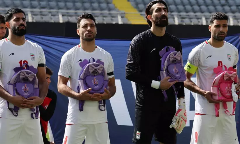 ആ കുഞ്ഞുബാഗുകളിൽ അവരുടെ ഓർമകൾ; ലോകത്തിനുമുമ്പാകെ അതു നെഞ്ചോടുചേർത്ത് ഇറാൻ ഫുട്ബാൾ ടീം; മൈതാനത്ത് വൈകാരിക മുഹൂർത്തങ്ങൾ