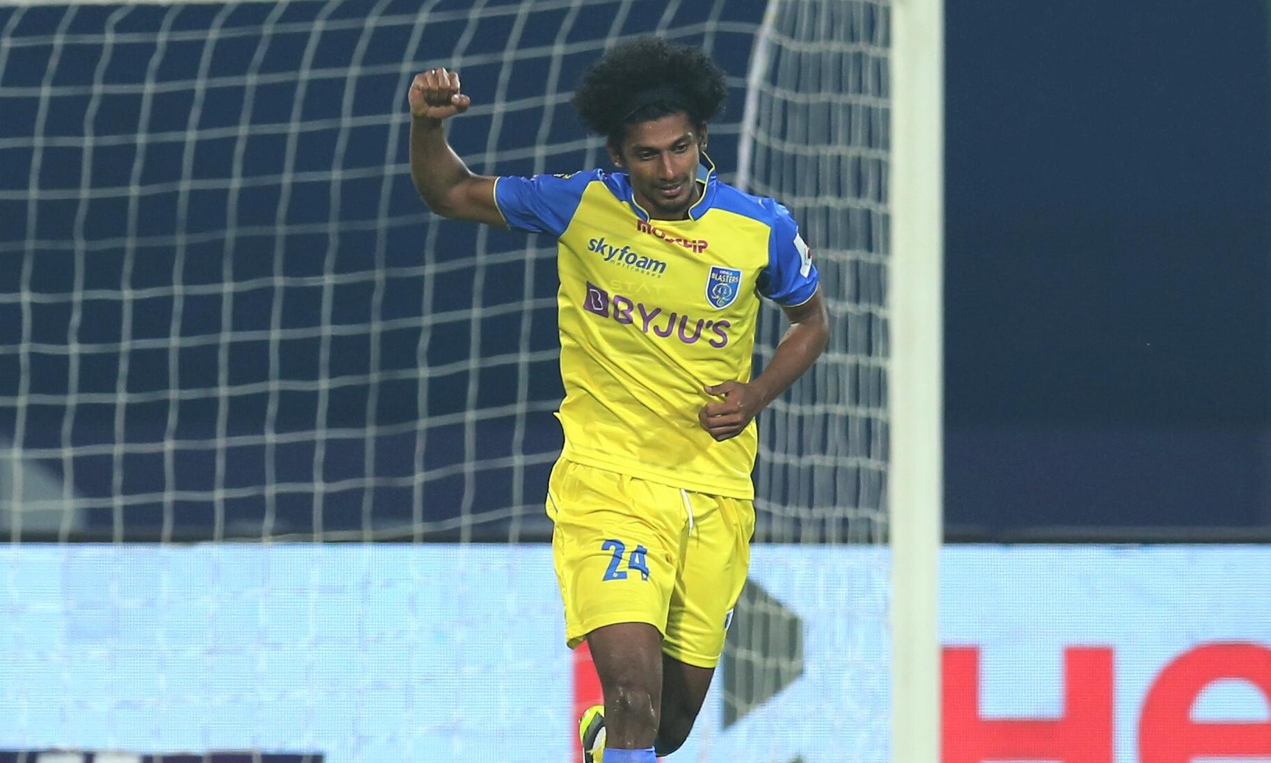 മധ്യനിരയിലെ േപ്ല മാസ്റ്ററായി ജീക്സൻ സിങ്ങും തല ഉയർത്തിയതോടെ കളത്തിൽ ഒന്നാന്തരം കളി പിറന്നു. 29ാം മിനിറ്റിൽ ബ്ലാസ്റ്റേഴ്സിന് അനുകൂലമായ ഫ്രീകിക്ക്, കോർണറായി മാറിയതാണ് ഗോളിലേക്ക് വഴിയൊരുക്കിയത്. ഫകുണ്ടോ പെരേര നൽകിയ കിക്ക് ബോക്സിനുള്ളിൽ വെടിക്കെട്ട് ഹെഡറിലൂടെ ഹക്കു വലയിലാക്കി. ബ്ലാസ്റ്റേഴ്സിന് ആത്മവിശ്വാസം നൽകിയ ഗോൾ.