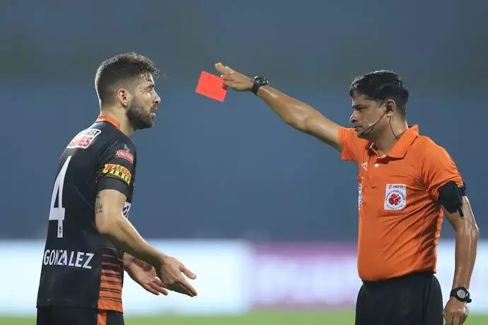 65ാം മിനുറ്റിലാണ് ഗോവക്ക് ഇടിത്തീയായി റഫറിയുടെ തീരുമാനമെത്തിയത്. ഗാരി ഹൂപ്പറിനെ വീഴ്ത്തിയതിന് ഇവാൻ ഗോൺസാലസിനെതിരെ റഫറി മഞ്ഞക്കാർഡ് വിളിച്ചു. ഇതിൽ കുപിതനായി ന്യായവാദങ്ങൾ നിരത്തിയ ഗോൺസാലസിന് നേരെ റഫറി രണ്ടാം മഞ്ഞക്കാർഡും ചുവപ്പുകാർഡും ഉയർത്തുകയായിരുന്നു. പക്ഷേ ഈ ആനുകൂല്യം മുതലെടുക്കാൻ ബ്ലാസ്റ്റേഴ്സിനായില്ല.