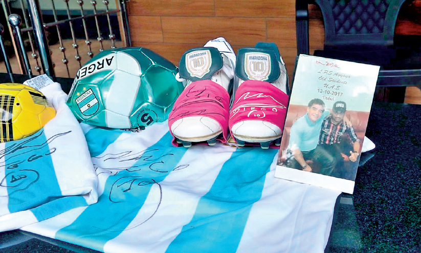 text_fieldsമറഡോണ സമ്മാനമായി നൽകിയ ബൂട്ടും ജഴ്സിയും