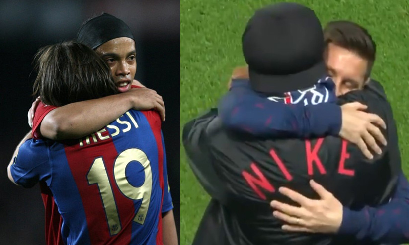 ഈ വർഷം മെസ്സി ബാഴ്സ വിട്ട് പി.എസ്.ജിയിലേക്ക് കൂടുമാറി. ബാഴ്സയുടെ ഇതിഹാസ താരങ്ങളായാണ് മെസ്സിയും റൊണാൾഡിഞ്ഞോയും പരിഗണിക്കപ്പെടുന്നത്. ചൊവ്വാഴ്ച പി.എസ്.ജി- ആർ.ബി ലെപ്സിഷ് ചാമ്പ്യൻസ് ലീഗ് മത്സരത്തിന് മുമ്പ് ഇതിഹാസങ്ങൾ ഒരിക്കൽകൂടി കണ്ടുമുട്ടി. മെസ്സിയും സംഘവും പരിശീലനം നടത്തുന്നതിനിടെയാണ് റൊണാൾഡിഞ്ഞോ കടന്നുവന്നത്.