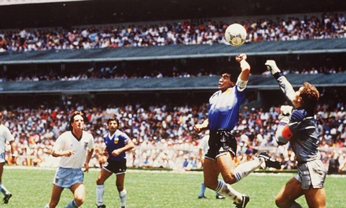 1986ലെ ഇംഗ്ലണ്ടിനെതിരായ ലോകകപ്പ് ക്വാർട്ടർ മൽസരത്തിലാണ് മറഡോണയുടെ ഹാൻഡ്ബോൾ ഗോൾ പിറന്നത്. മൽസരത്തിൻെറ 51ാം മിനിറ്റിൽ മറഡോണയും ജോർജ് വാൽഡാനേയും ചേർന്ന് മുന്നേറ്റം. ഇംഗ്ലീഷ് താരം സ്റ്റീവ് ഹോഡ്ജിൻെറ ഇടപെടൽ ശ്രമം വിഫലമാക്കുന്നു. പക്ഷേ പിന്നീടാണ് ഹോഡ്ജിന് പിഴക്കുന്നത്. ഗോൾകീപ്പർ ഷിൽട്ടന് നൽകാനിരുന്ന പന്ത് നേരെ പോയത് മറഡോണക്ക് മുന്നിലേക്ക്. ഷിൽട്ടനെ മറികടക്കാൻ സാധിക്കാതിരുന്ന മറഡോണ തൻെറ ഇടതുകൈ കൊണ്ട് പന്ത് വലയിലേക്ക് തട്ടിയിടുന്നു.