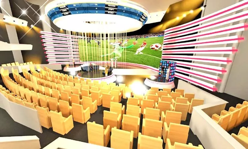 text_fieldsലോകകപ്പിന്റെ പ്രധാന മീഡിയ സെന്ററിലെ വെർച്വൽ സ്റ്റേഡിയം മാതൃക