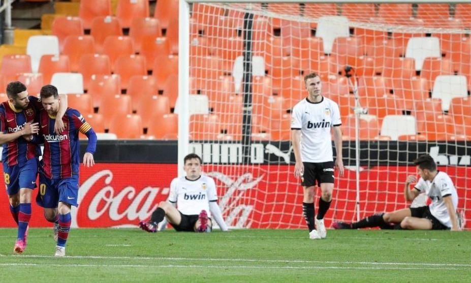 കഴിഞ്ഞ കളിയിൽ ദുർബലരായ ഗ്രനഡയോട് തോറ്റത് ബാഴ്സയുടെ കിരീട മോഹങ്ങൾക്ക് തിരിച്ചടിയായിരുന്നുവെങ്കിലും എല്ലാ പഴുതുമടച്ചാണ് ഞായറാഴ്ച വലൻസിയ മുറ്റത്ത് ബൂട്ടുകെട്ടിയത്. പെനാൽറ്റി ഗോളാക്കാതെ നഷ്ടപ്പെടുത്തിയ മെസ്സി രണ്ടു വട്ടം പകരം ചോദിച്ചാണ് വലൻസിയക്കെതിരെ വിജയം ഉറപ്പാക്കിയത്.