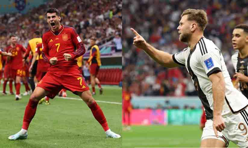 text_fieldsദോഹ: ലോകകപ്പിൽ ആദ്യ റൗണ്ടിലെ ഏറ്റവും കടുത്ത മത്സരമെന്ന് വിശേഷിപ്പിക്കപ്പെട്ട ജർമനി-സ്പെയിൻ പോരാട്ടത്തിൽ ഉശിരൻ സമനില. ആദ്യന്തം ആവേശകരമായ പോരിൽ ഇരു ടീമും ഓരോ ഗോളടിച്ച് പിരിയുകയായിരുന്നു. സ്പെയിനായി മൊറാട്ടയും ജര്മനിക്കായി ഫുള്ക്രഗുമാണ് ഗോള് കണ്ടെത്തിയത്. ഇരുടീമും കൊണ്ടും കൊടുത്തും മുന്നേറിയ മത്സരം പ്രതീക്ഷിച്ച പോലെ പന്ത് ഇരുപകുതികളിലും കയറിയിറങ്ങി. ആദ്യ പകുതി സ്പെയിനിന് സ്വന്തമായിരുന്നെങ്കിൽ രണ്ടാം പകുതി ജർമനിയുടെ വരുതിയിലായിരുന്നു.
