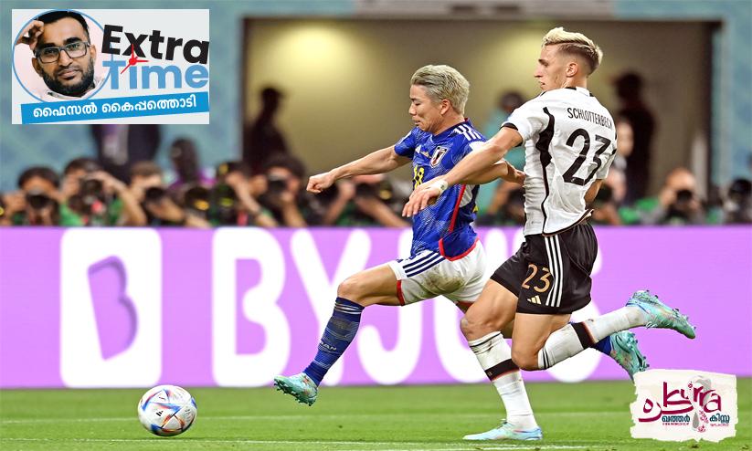രണ്ട് പതിറ്റാണ്ടോളമായി ലോകനിലവാരത്തില് നിരന്തരമായി പന്തുതട്ടി കൊണ്ടേയിരിക്കുന്ന, വരുന്ന പത്ത് വര്ഷത്തിനുള്ളില് ടോപ് ഫ്ലൈറ്റ് ഫുട്ബോള് രാജ്യങ്ങളിലൊന്നാവുമെന്ന് ഉറപ്പാക്കുന്ന ഫുട്ബോള് സിസ്റ്റവുമുള്ള ജപ്പാനും എല്ലാക്കാലത്തും ടൂര്ണമെന്റ് ഫേവറിറ്റുകളായ ജര്മനിയും തമ്മിലുള്ള കളിയില് ആരാധകര് പ്രതീക്ഷിച്ച യഥാര്ത്ഥ തീപ്പൊരി ഉയർന്നത് അവസാന മുപ്പത് മിനുറ്റുകളിലായിരുന്നു. സാധ്യമായ എല്ലാ പ്രയത്നങ്ങളും കളത്തിലെടുത്ത് ഒടുക്കം 'ടൊയോട്ടക്കാര്' 'ഓഡി'ക്കാരെ ദോഹ ഖലീഫ സ്റ്റേഡിയത്തില് ഒടിച്ചിട്ടു.