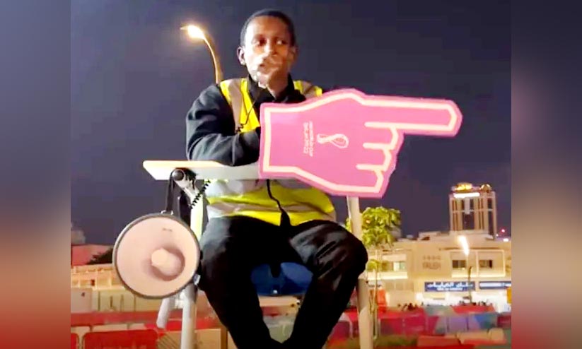 ദോഹ: ലോകകപ്പിലെ കളി വിശേഷങ്ങൾക്ക് പുറമെ ഇപ്പോൾ സാമൂഹിക മാധ്യമങ്ങളിൽ താരം അബുബകർ അബ്ബാസ് എന്ന 23കാരനായ കെനിയക്കാരാനാണ്. ലോകകപ്പ് ഫുട്ബാളിൻെറ ആഘോഷ വേദികളിൽ ഒന്നായ സൂഖ് വാഖിഫിലേക്കെത്തുന്ന കാണികൾ ആരും വലിയൊരു കസരേക്ക് മുകളിൽ ഇരിപ്പുറപ്പിച്ച് മൈക്രോ ഫോണിൽ ആളുകൾക്ക് നിർദേശം നൽകുന്ന ഈ യുവാവിനെ കാണാതെ പോവില്ല.