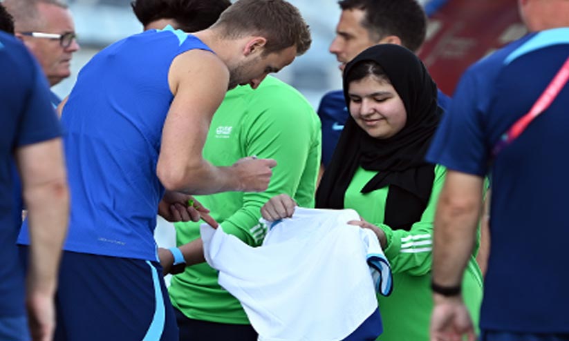 കെയ്ൻ പരിശീലനത്തിനിടെ ഓട്ടോഗ്രാഫ് നൽകുന്നു