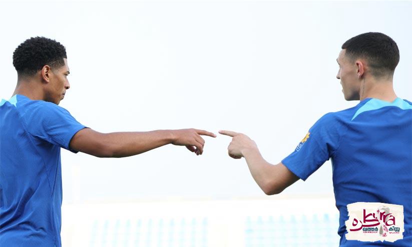 text_fieldsഇംഗ്ലണ്ടിന്റെ ജൂഡ് ബെല്ലിങ്ഹാമും ഫിൽ ഫോഡനും പരിശീലനത്തിനിടെ