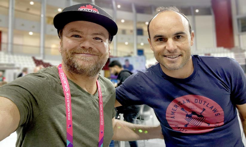 text_fieldsകാനഡ ആരാധകനായ ലീ കോർമിഷ് മുൻ അമേരിക്കൻ താരം ലാൻഡൺ ഡൊണോവനൊപ്പം ദോഹയിൽ