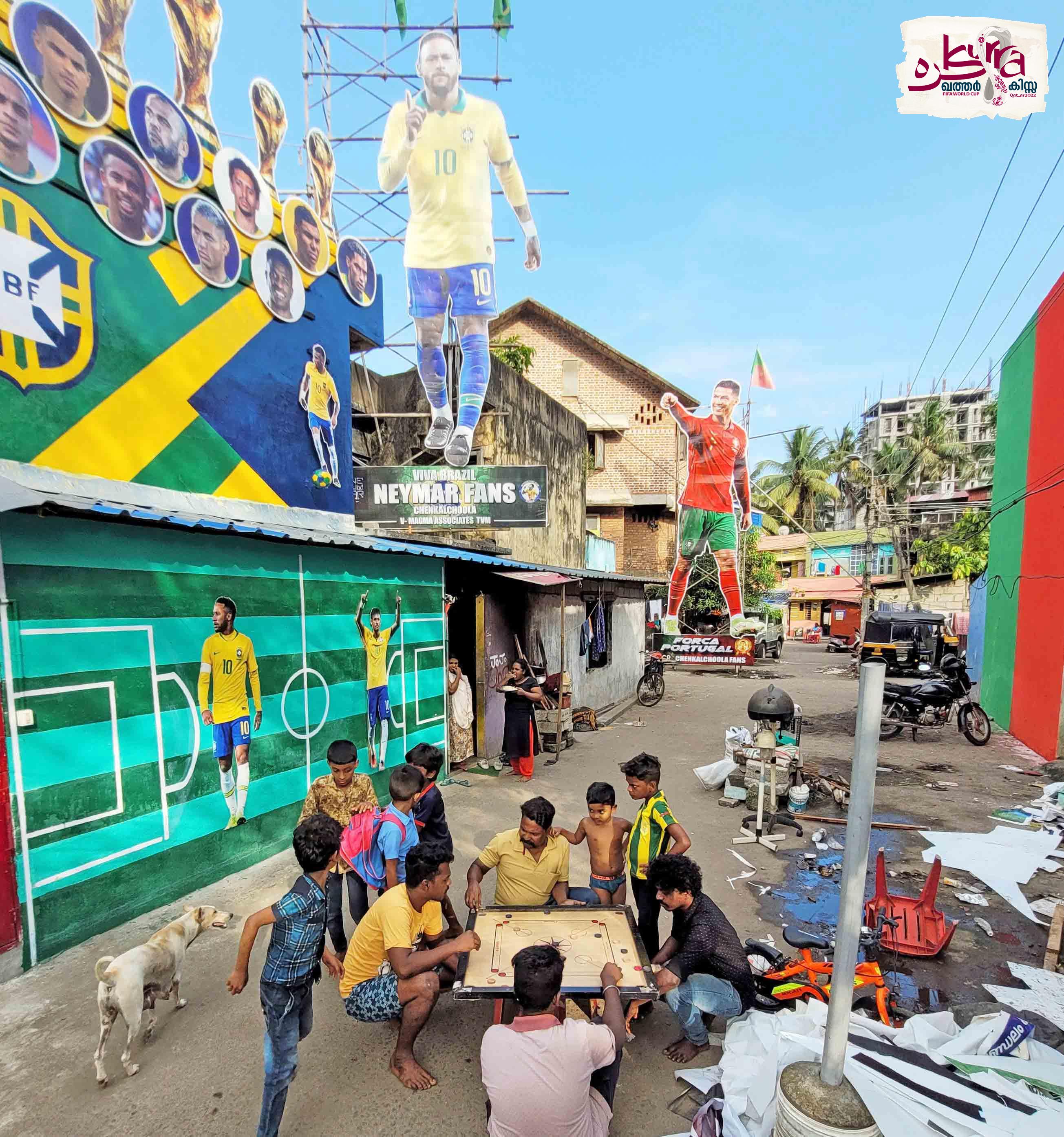 text_fieldsലോകകപ്പ് ഫുട്ബാൾ മാമാങ്കത്തിന് മണിക്കൂറുകൾ ബാക്കിനിൽക്കെ, നാടെങ്ങും ആവേശത്തിമിർപ്പിലാണ്. കളി മുറുകുന്നത് ഖത്തറിലാണെങ്കിലും കേരളത്തിന്റെ ഓരോ കോണിലും ആരാധകർ ആവേശത്തിന്റെ പരകോടിയിലാണ്. തിരുവനന്തപുരം ചെങ്കൽചൂളയിൽ താരങ്ങളുടെ കട്ടൗട്ടുകൾ