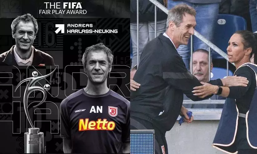 ബെർലിൻ: കഴിഞ്ഞ ദിവസം ദോഹയിൽ നടന്ന ഫിഫ ബെസ്റ്റ് പുരസ്കാര ചടങ്ങിൽ താരമായി ജർമൻ ബുണ്ടസ് ലിഗ രണ്ടാം ഡിവിഷൻ ക്ലബായ എസ്.എസ്.വി യാൻ റീഗൻസ് ടീം ഡോക്ടർ ആൻഡ്രിയാസ് ഹാർലാസ് ന്യൂകിങ്. ഈ വർഷം ഏപ്രിൽ 20ന് നടന്ന ബുണ്ടസ് ലിഗ രണ്ടാം ഡിവിഷൻ മത്സരത്തിനിടയിലെ ജീവൻ രക്ഷാ ഇടപെടലായിരുന്നു 63കാരനായ ഡോ. ഹാലാസ് ന്യൂകിങ്ങിനെ ലോകഫുട്ബാളിന്റെ പുരസ്കാര വേദിയിലെത്തിച്ചത്.