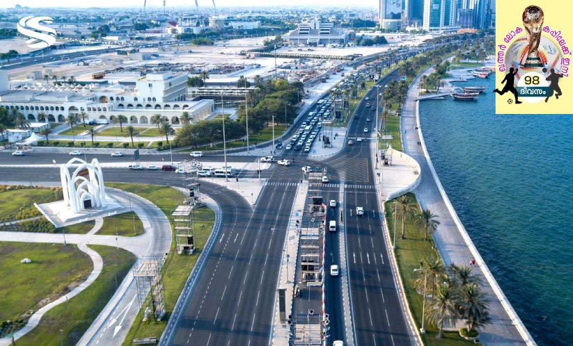 ഖത്തറിന്റെ ഹൃദയമായി, ഗൾഫ് കടലിനോട് ചുംബിച്ച് ആറ് കി.മീ ദൈർഘ്യത്തിൽ നീണ്ടുകിടക്കുന്ന ദോഹ കോർണിഷ് സംഗമങ്ങളുടെ കേന്ദ്രമായിമാറും. ഒരേസമയം 1.20 ലക്ഷം പേരെ ഉക്കൊള്ളാൻശേഷിയുള്ള കോർണിഷ് അലങ്കാരപ്പണികൾ പൂർത്തിയാക്കി ലോകോത്തര തെരുവായി ഇതിനകം മാറിക്കഴിഞ്ഞു.