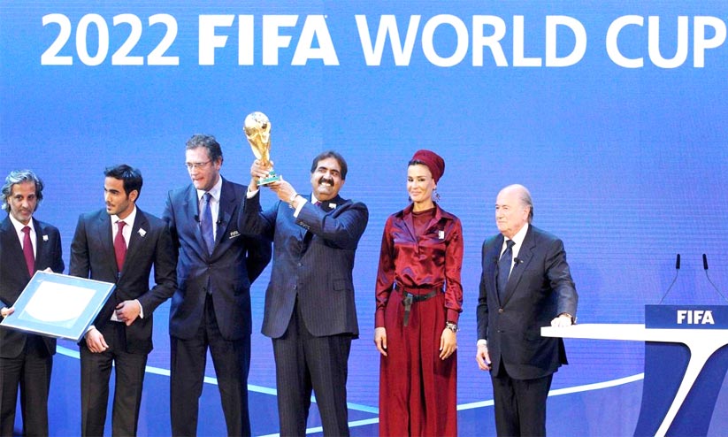 text_fields2010ലെ ഫിഫ കോൺഗ്രസിൽ ഖത്തറിനെ ലോകകപ്പ് ആതിഥേയരായി പ്രഖ്യാപിച്ചതിനു പിന്നാലെ ട്രോഫിയുമായി പിതാവ് അമീർ ശൈഖ് ഹമദ് ബിൻ ഖലീഫ ആൽഥാനി. ഫിഫ പ്രസിഡന്റായിരുന്ന