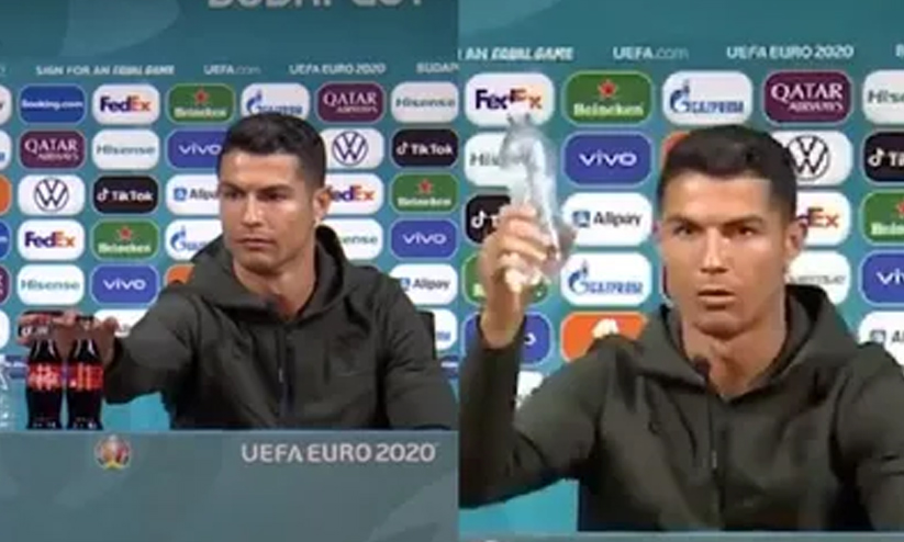 ഹംഗറിക്കെതിരായ മത്സരത്തിനു മുമ്പ് നടത്തിയ വാർത്തസമ്മേളനത്തിലാണ് റൊണാൾഡോ മേശപ്പുറത്തിരുന്ന കൊക്കകോള നീക്കം ചെയ്ത് വെള്ളം കുടിക്കാൻ ആഹ്വാനം ചെയ്തത്. തൊട്ടുപിന്നാലെയാണ് ഫ്രാൻസിെൻറ പോൾ പോഗ്ബ മേശപ്പുറത്തുനിന്ന് മദ്യക്കുപ്പി നീക്കം ചെയ്തത്.