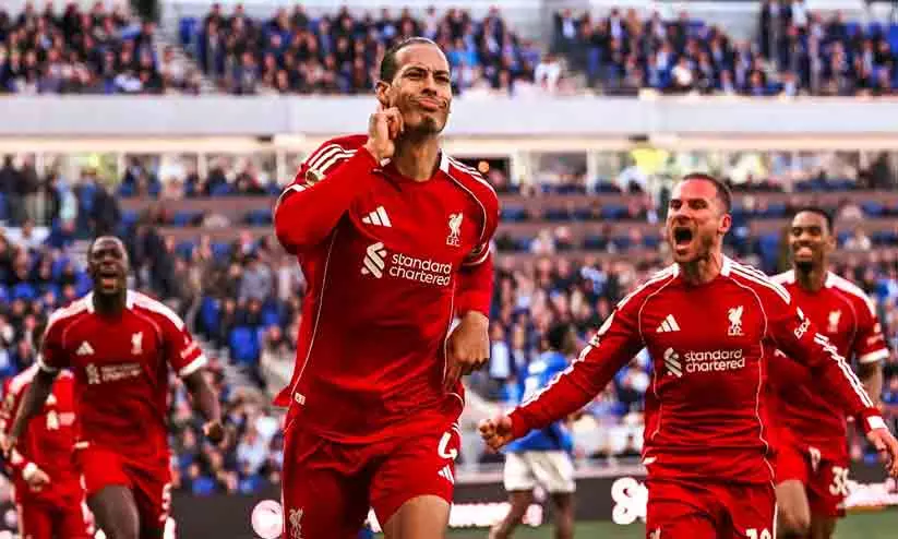 text_fieldsലിവർപൂൾ : ചരിത്രപ്രസിദ്ധമായ മെഴ്സിഡൈസ് ഡെർബിയിൽ എവർട്ടനെ നാടകീയമായി കീഴടക്കി ലിവർപൂൾ. ഹിൽ ഡിക്കിൻസൺ സ്റ്റേഡിയത്തിൽ നടന്ന ആവേശപ്പോരാട്ടത്തിൽ, ഇഞ്ചുറി ടൈമിന്റെ പത്താം മിനിറ്റിൽ (100') ക്യാപ്റ്റൻ വിർജിൽ വാൻ ഡൈക് നേടിയ ഗോളാണ് ലിവർപൂളിന് 2-1ന്റെ ആവേശജയം സമ്മാനിച്ചത്. ജയത്തോടെ പോയിന്റ് പട്ടികയിൽ ആറാം സ്ഥാനത്തുള്ള ചെൽസിയേക്കാൾ ഏഴ് പോയിന്റ് മുന്നിലെത്തിയ ലിവർപൂൾ ചാമ്പ്യൻസ് ലീഗ് യോഗ്യതയ്ക്കായുള്ള പോരാട്ടം ശക്തമാക്കി.