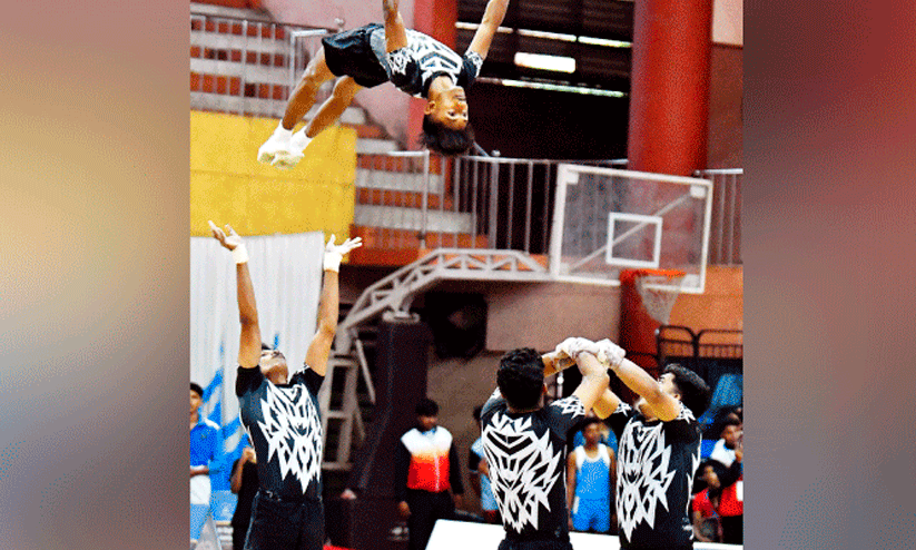 text_fieldsദേശീയ ജിംനാസ്റ്റിക് ചാമ്പ്യൻഷിപ്പിൽ ജൂനിയർ വിഭാഗം അക്രോബാറ്റിക് മെൻ ഗ്രൂപ്പിൽ കേരളത്തിനുവേണ്ടി മത്സരിക്കുന്ന പി.എസ് ഷറിൽ റുമാൻ, എം.പി. സത്വിക്, മുഹമ്മദ് സഫാൻ, മുഹമ്മദ് നിബ്രാസ് - ബിമൽ തമ്പി