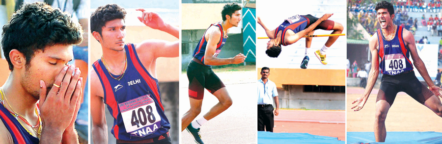 ദേശീയ ജൂനിയര് അത്ലറ്റിക് മീറ്റില് അണ്ടര് 18 ബോയ്സ് ഹൈജംപില് ഡല്ഹിയുടെ തേജശ്വിന് ശങ്കറിന്െറ പ്രകടനത്തില്നിന്ന്. സീനിയര് വിഭാഗത്തിലും പുതിയ ഉയരം കുറിച്ചാണ് തേജശ്വിന് മടങ്ങിയത്. -