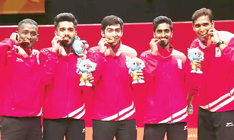 അജന്ത ശരത് കമൽ, ജി. സത്യൻ എന്നിവർ സിംഗ്ൾസിൽ അനായാസ ജയംനേടി. ജി. സത്യൻ മുൻ സിംഗ്ൾസ് ചാമ്പ്യനെതിരായ മത്സരത്തിെൻറ ആദ്യ ഗെയിമിൽ തോറ്റതിനു പിന്നാലെയാണ് ശക്തമായി തിരിച്ചെത്തിയത്. തൊട്ടുപിന്നാലെ ഹർമീത് ദേശായ്-ജി. സത്യൻ സഖ്യം ഡബ്ൾസിലും ജയിച്ച് ഇന്ത്യക്ക് സുവർണം സമ്മാനിച്ചു.