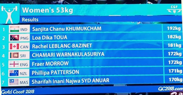 സഞ്ജിതാ ചാനുവിലൂടെ ഇന്ത്യക്ക് രണ്ടാം സ്വർണം