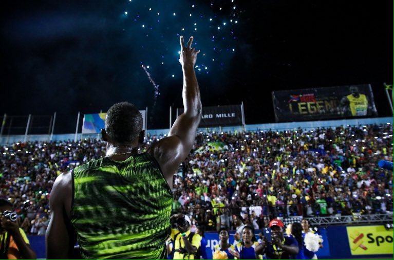 ആഗസ്റ്റിൽ നടക്കുന്ന ലോക ചാമ്പ്യൻഷിപ്പോടെ വിരമിക്കുന്നതിന് മുന്നോടിയായാണ് ബോൾട്ടിന് യാത്രയയപ്പ് നൽകാൻ റേസേഴ്സ് ഗ്രാൻഡ് പ്രീയിൽ ‘സല്യൂട്ട് ടു എ െലജൻഡ്’ എന്ന വിശേഷണത്തോടെ മത്സരം ഒരുക്കിയത്. ജെവാൻ മിൻസി, റാമോൺ ഗിറ്റൺസ്, ജേസൺ റോജേഴ്സ്, ഡാനിയൽ ബെയ്ലി തുടങ്ങിയവർക്കൊപ്പമായിരുന്നു ഒാട്ടം. രാജകീയ വരവേൽപ്പോടെ ട്രാക്കിലിറങ്ങിയ ബോൾട്ട് 10.03 സെക്കൻഡിൽ ഒാടിത്തീർത്താണ് ജമൈക്കയോട് യാത്ര പറഞ്ഞത്.