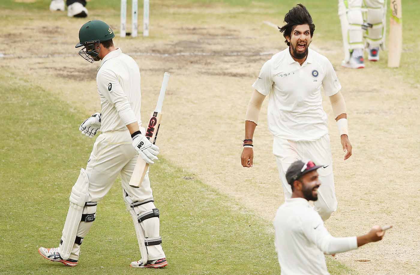രണ്ടാം ഇന്നിങ്സിൽ ബാറ്റിങ്ങിനിറങ്ങിയ ആസ്ട്രേലിയക്ക് തുടക്കത്തിൽ തന്നെ മൂന്ന് വിക്കറ്റുകൾ നഷ്ടമായി. പാറ്റ് കമ്മിൻസ്(61), ഷോൺ മാർഷ്(44) എന്നിവർ മാത്രമാണ് ആസ്ട്രേലിയൻ നിരയിൽ പിടിച്ചുനിന്നത്. മാർകസ് ഹാരിസ്(13), ഫിഞ്ച്(3), ഉസ്മാൻ ഖ്വാജ(33), ട്രാവിസ് ഹെഡ്(34), മിച്ചൽ മാർഷ്(10), ടിം പെയ്ൻ(26) എന്നിവർക്ക് കാര്യമായി തിളങ്ങാനായില്ല.