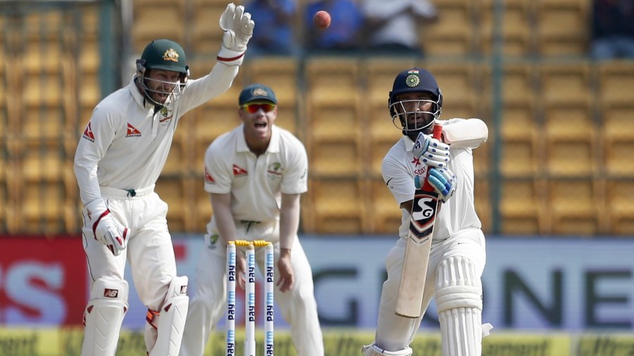 അഞ്ചാം വിക്കറ്റ് കൂട്ടിൽ 118 റൺസ് പിറന്നിരുന്നു. രണ്ടാം ന്യൂബാളെടുത്ത് ഒാസീസ് ആക്രമണമാരംഭിച്ചതോടെ പവിലിയനിലേക്ക് ജൈത്രയാത്രയായി. രഹാനെ (52) സ്റ്റാർകിെൻറ പന്തിൽ വിക്കറ്റിന് മുന്നിൽ കുരുങ്ങിയപ്പോൾ വിജയകരമായ റിവ്യൂവിലൂടെ ഇന്ത്യൻ പ്രതിരോധക്കോട്ട പിളർത്തി. കരുൺ നായർ (0), പുജാര (92), അശ്വിൻ (4), ഉമേഷ് യാദവ് (1), ഇശാന്ത് ശർമ (6) എന്നിവർ നൂൽപൊട്ടിയ മുത്തുമാലപോലെ ഉൗർന്നുപോയി. അഞ്ചിന് 238ൽ നിന്ന് പത്തിന് 274ൽ തകർന്നു. ഇതിനിടെ വൃദ്ധിമാൻ സാഹ (20) നടത്തിയ ചെറുത്തുനിൽപും ശ്രദ്ധേയമായി. ഹേസൽവുഡ് ആറു വിക്കറ്റ് വീഴ്ത്തിയപ്പോൾ, മിച്ചൽ സ്റ്റാർകും സ്റ്റീവ് ഒകീെഫയും രണ്ട് വിക്കറ്റ് വീതം വീഴ്ത്തി.