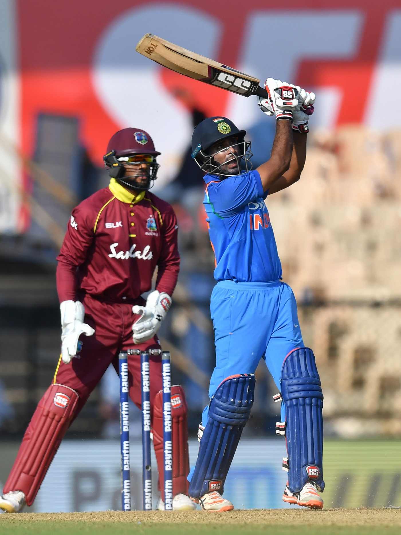 ടോസ് നേടിയ ഇന്ത്യ ബാറ്റിങ് തിരഞ്ഞെടുത്തു. മികച്ച തുടക്കം നൽകിയ ഒാപണർമാർ ആദ്യ വിക്കറ്റിൽതന്നെ 71 റൺസ് കൂട്ടിച്ചേർത്തിരുന്നു. ധവാനെ പുറത്താക്കി (38) കീമോ പേളാണ് സന്ദർശകർക്ക് ആദ്യ വിക്കറ്റൊരുക്കുന്നത്. തുടർച്ചയായ മൂന്നു കളിയിൽ സെഞ്ച്വറിയുമായി വൻഫോമിലുള്ള വിരാട് കോഹ്ലിയെ ആരാധകർ ആരവങ്ങളോടെ വരവേറ്റെങ്കിലും, ക്യാപ്റ്റന് ഇത്തവണ ആയുസ്സില്ലായിരുന്നു. റോച്ച് കോഹ്ലിയെ (16) ഷെയ്ഹോപ്പിെൻറ കൈകളിലെത്തിച്ചു.