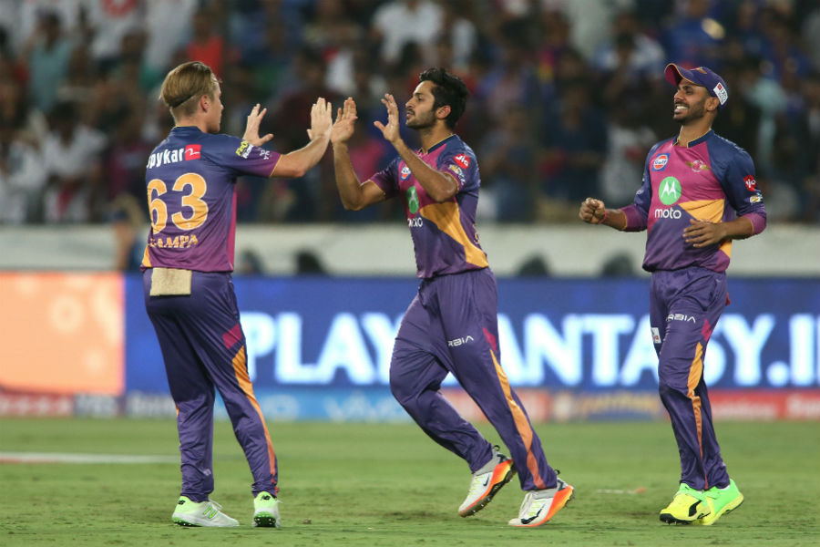 ടോസ് നേടിയതൊഴികെ കാര്യങ്ങളൊന്നും മുംബൈക്കൊപ്പമായിരുന്നില്ല. സ്കോർ ബോർഡിൽ എട്ടു റൺസെത്തിയപ്പോൾ ഒാപണർമാരായ ലെൻഡൽ സിമ്മൺസും (എട്ടു പന്തിൽ മൂന്ന്) പാർഥിവ് പേട്ടലും (ആറു പന്തിൽ നാല്) വിശ്രമിക്കാനെത്തി. ഉജ്ജ്വല ഫോമിൽ പന്തെറിയുന്ന പേസ് ബൗളർ ഉനാദ്കടായിരുന്നു ഇരുവരുടെയും അന്തകൻ. പ്രതീക്ഷയിലേക്ക് കൂട്ടുകെട്ടുയർത്തി അമ്പാട്ടി റായുഡുവും (15 പന്തിൽ 12) നായകൻ രോഹിത് ശർമയും ബാറ്റുവീശിയെങ്കിലും എട്ടാം ഒാവറിൽ സ്മിത്തിെൻറ മാരക ഫീൽഡിങ് അമ്പാട്ടിയെ വീഴ്ത്തി. അനാവശ്യ റണ്ണിനായി ഒാടിയ അമ്പാട്ടി റായുഡു സ്മിത്തിെൻറ നേരിട്ടുള്ള ഏറിൽ റണ്ണൗട്ടായി. അധികം വൈകുംമുേമ്പ നായകൻ മടങ്ങി. ഇഴഞ്ഞുനീങ്ങിയ സ്കോർ ബോർഡിെന വേഗത്തിലാക്കാനുള്ള ശ്രമത്തിനിടെ ഡീപ് മിഡ്വിക്കറ്റിൽ ഠാകുറിെൻറ കൈയിൽ രോഹിത് ഒതുങ്ങി. പിന്നീടുള്ള പ്രതീക്ഷ കിറോൺ പൊള്ളാർഡിലായിരുന്നു. പക്ഷേ, സിക്സർ പ്രതീക്ഷിച്ച് പൊള്ളാർഡ് (ഏഴ്) തൊടുത്ത ഷോട്ട് ബൗണ്ടറി ലൈനിനരികെ മനോജ് തിവാരിയുടെ കൈയിൽ ഭദ്രമായെത്തി.