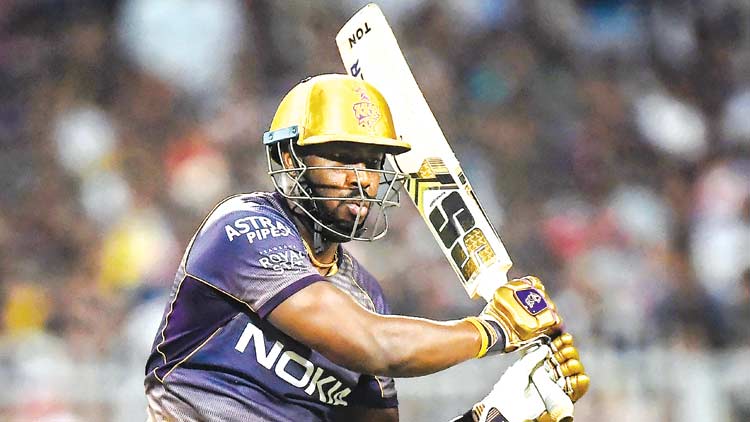 മറുപടി ബാറ്റിങ്ങിനിറങ്ങിയ കൊൽക്കത്തയെ വൻ തകർച്ചയിൽനിന്നാണ് റസലും റാണയും ചേർന്ന് കൈപിടിച്ചുയർത്തുന്നത്. അവസാനം വരെ അടിച്ചുനോക്കിയെങ്കിലും പക്ഷേ കാര്യമുണ്ടായില്ല. നിശ്ചിത ഒാവറിൽ 203 റൺസെടുക്കാനെ സാധിച്ചുള്ളൂ. ഒമ്പതു സിക്സും രണ്ടു ഫോറുമായാണ് റസൽ 25 പന്തിൽ 65 റൺസെടുത്തത്. റാണ അഞ്ചു സിക്സും ഒമ്പതു ഫോറും അതിർത്തി കടത്തി 46 പന്തിൽ 85 റൺസെടുത്തു.