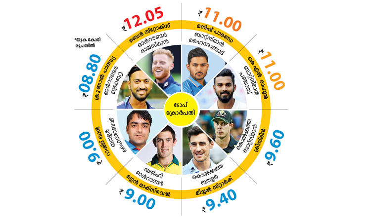 ചെന്നൈയിലെത്തിക്കുമെന്ന് എം.എസ്. ധോണി വാഗ്ദാനം ചെയ്ത ആർ. അശ്വിനെ 7.60 കോടിക്ക് കിങ്സ് ഇലവൻ പഞ്ചാബ് റാഞ്ചി. ക്രിസ് ഗെയ്ലിനെ ആർക്കും വേണ്ടാതായപ്പോൾ വിൻഡീസിലെ മറ്റൊരു ബിഗ് ഹിറ്റർ കീറൺ പൊള്ളാഡിനെ മുംബൈ ഇന്ത്യൻസ് ആർ.ടി.എം വഴി 5.40 കോടിക്ക് നിലനിർത്തി. ഇന്ത്യൻ ടീമിൽ കളിക്കാത്ത ക്രുണാൽ പാണ്ഡ്യക്ക് മുംബൈ മുടക്കിയത് 8.80 കോടി രൂപ. വിൻഡീസ് ദേശീയ ടീമിലെത്താത്ത ജൊഫ്ര അർചറിന് രാജസ്ഥാൻ എറിഞ്ഞത് 7.2 കോടി. ലേലമേശയിലെത്തിയ മലയാളി താരം വിഷ്ണു വിനോദിന് ആവശ്യക്കാരില്ല.ഗൗതം ഗംഭീർ ( 2.80 കോടി-ഡൽഹി), ഹർഭജൻ സിങ് (2 കോടി-ചെന്നൈ), യുവരാജ് സിങ് (2 കോടി) എന്നീ സീനിയർ താരങ്ങൾക്ക് ലഭിച്ചത് അടിസ്ഥാനവില മാത്രം.