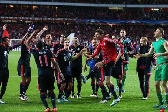 മറ്റൊരു മത്സരത്തിൽ പോര്ച്ചുഗീസ് ടീം ബെന്ഫികയെ സമനിലയിൽ പൂട്ടി ജര്മന് വമ്പന്മാരായ ബയേണ് മ്യൂണിക്ക് സെമിയിലേക്ക് കുതിച്ചു. ബെന്ഫികയുടെ തട്ടകമായ ലിസ്ബണിൽ നടന്ന മത്സരത്തിൽ 27ാം മിനിട്ടിൽ മെക്സിക്കൻ താരം റൗൾ ജിമനെസാണ് ബെൻഫിക്കയുടെ ആദ്യഗോൾ നേടിയത്. 38ാം മിനിട്ടിൽ അർതുറോ വിദാലിലൂട ബയേൺ തിരിച്ചടിച്ചു. 52ാം മിനിട്ടിൽ തോമസ് മുള്ളറിലുടെ ജർമനി മുന്നിലെത്തി. 76ാം മിനിട്ടിൽ താലിസ്കയാണ് ബെൻഫിക്കയുടെ സമനില ഗോൾ നേടിയത്. ആദ്യപാദത്തില് 1-0ന് ബയേണിനായിരുന്നു ജയം. ആദ്യപാദത്തിലെ വിജയത്തിൻെറ മുൻതൂക്കത്തിലാണ് ജർമൻസംഘം സെമിയിലെക്കെത്തിയത്. അര്ടുറോ വിദാലിന്െറ ഗോളിലായിരുന്നു ആദ്യപാദത്തില് ബെന്ഫികക്കെതിരെ ബയേണിന്െറ ജയം. പരിക്കു കാരണം അര്യന് റോബനും ജെറോം ബോടെങ്ങും ബയേണ് നിരയില് ഉണ്ടായിരുന്നില്ല.
