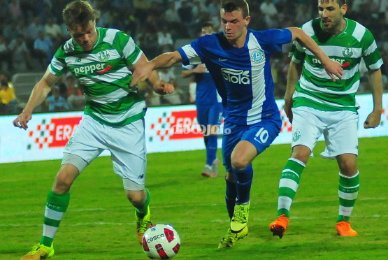 32ാം മിനിറ്റ്: മിന്നല്വേഗത്തിലെ നീക്കങ്ങള്ക്കൊടുവില് യുക്രെയ്ന് ക്ളബ് നിപ്രൊ ആദ്യമായി വലകുലുക്കി. സ്വന്തം പകുതിയില് നിന്നു ലഭിച്ച പന്തുമായി കുതിച്ച ഡെനിസ് ബ്ളാനിയുക് വലതു വിങ്ങില് നിന്നും നല്കിയ ക്രോസ് പെനാല്റ്റി ബോക്സിനു വെളിയില് നിന്നും ശരവേഗതയില് പത്താം നമ്പറുകാരന് വ്ളാഡിസ്ലാവ് കൊഷര്ഗിന് ഗോള്വലയിലേക്ക് ചത്തെിയിട്ടപ്പോള് ഷംറോക് ഗോളി നിസ്സഹായനായി.