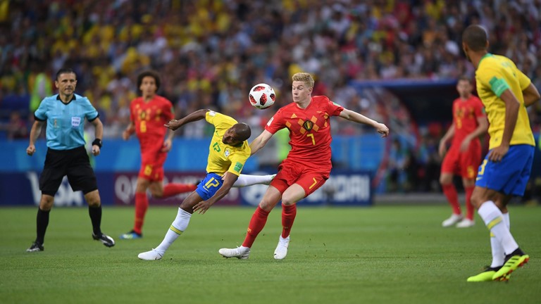 നെയ്മറും കുടീന്യോയും ഗബ്രിയേൽ ജീസസും ചേർന്ന് നടത്തിയ നിരന്തര മുന്നേറ്റത്തിനിടെ, ബെൽജിയത്തിന് അനുകൂലമായി ലഭിച്ച കോർണർ കിക്ക് സ്വന്തം വലയിലേക്ക് തട്ടിയിട്ട് ഫെർണാണ്ടീന്യോയാണ് സെൽഫ് ഗോൾ വഴങ്ങിയത്. കളിയുടെ ഗതിക്ക് എതിരായി പിറന്ന ഗോൾ ബ്രസീലിനെ തളർത്തി. ഏതാനും മിനിറ്റുകൾ പതറിേപ്പായ കാനറികൾ, വൈകാതെ തിരിച്ചെത്തിയെങ്കിലും 31ാം മിനിറ്റിൽ ലുകാകുവിെൻറ മിടുക്കിനു മുന്നിൽ സമനിലതെറ്റി. മധ്യനിരയിൽനിന്നും പന്ത് റാഞ്ചിയെടുത്ത് നടത്തിയ ഒറ്റയാൻ കുതിപ്പിെൻറ കെവിൻ ഡിബ്രുയിൻ ആളൊഴിഞ്ഞ ബ്രസീൽ ഗോൾമുഖത്തേക്ക് നിറയൊഴിച്ചുവിട്ടു. ഞൊടിയിടയിൽ പിറന്ന രണ്ടാം ഗോൾ മഞ്ഞപ്പടയുടെ ആത്മവിശ്വാസം തീർത്തും ചോർത്തുന്നതായിരുന്നു. ആദ്യ പകുതിയിൽ ഡിബ്രുയിൻ-ലുകാകു-ഹസാഡ് കൂട്ട് വീണ്ടും ആക്രമിച്ചപ്പോൾ ഭാഗ്യത്തിനാണ് ബ്രസീൽ വലകുലുങ്ങാതെ കാത്തത്.