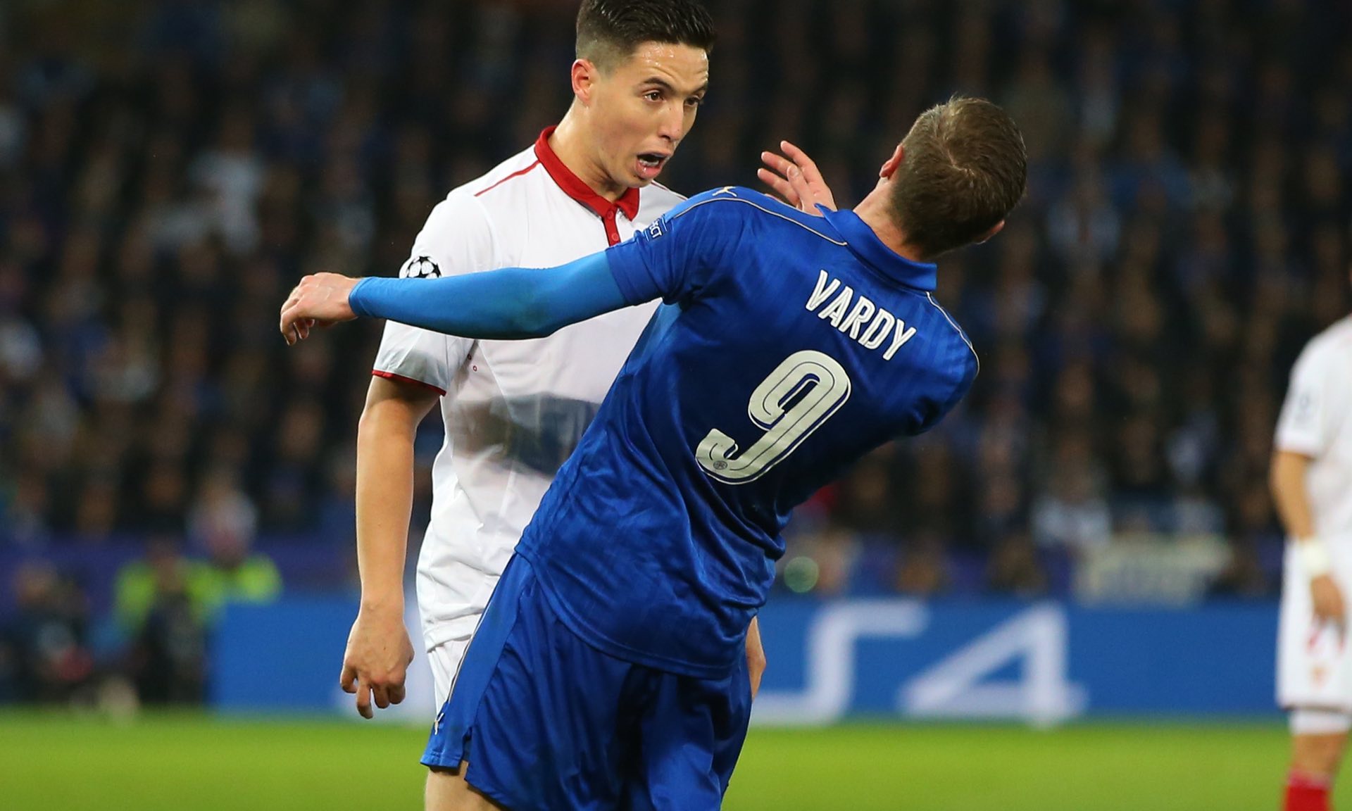 അഗ്രിഗേറ്റിൽ ഒരു ഗോളിന് പിന്നിലായതോടെ സെവിയ്യ ആക്രമണം ശക്തമാക്കി. ലെസ്റ്റർ കടുത്ത പ്രതിരോധത്തിലേക്കും. ഇൗ ചെറുത്തുനിൽപ് 74ാം മിനിറ്റിലെ സാമിർ നസ്റിയുടെ ചുവപ്പ്കാർഡിലേക്ക് നയിച്ചു. ജാമിവാർഡിയുമായി കൊമ്പുകോർത്ത നസ്രിയുടെ തലയിടിക്ക് റഫറി മഞ്ഞക്കാർഡുയർത്തി. 18ാം മിനിറ്റിൽ ആദ്യ മഞ്ഞ കണ്ട ഫ്രഞ്ച് താരത്തിന് ഇക്കുറി മാർച്ചിങ് ഒാർഡറായി. സെവിയ്യ പത്ത് പേരിലേക്ക് ഒതുങ്ങിയിട്ടും ആക്രമണമൂർച്ച കുറഞ്ഞില്ല. 80ാം മിനിറ്റിൽ ലഭിച്ച പെനാൽറ്റി സ്പാനിഷ് ടീമിന് പ്രതീക്ഷയായി. എന്നാൽ, എൻസോൻസിയെടുത്ത കിക്ക് ലെസ്റ്റർ ഗോളി കാസ്പർ ഷ്മൈക്കൽ പിടിയിലൊതുക്കി സെവിയ്യയുടെ അവസാന ചാൻസും അട്ടിമറിച്ചു. ക്വാർട്ടർ പ്രവേശനം കോച്ച് ഷേക്സ്പിയറും ക്യാപ് റ്റൻ വെസ്മോർഗനും മുൻ കോച്ച് ക്ലോഡിയോ റനേരിക്കാണ് സമർപ്പിച്ചത്.