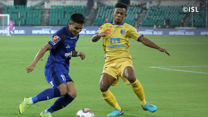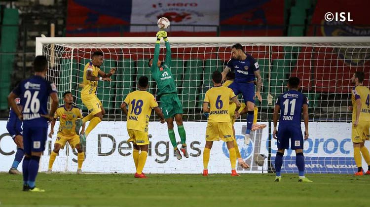 ക്രെമരവിച്ചിന് പകരക്കാരനായി സെമിൻലെൻ ഡോംഗലും സഹലിന് പകരക്കാരനായി സന്ദേശ് ജിങ്കാനും എത്തിയെങ്കിലും കാര്യമുണ്ടായില്ല. 80ാം മിനിറ്റിൽ ഒന്നാന്തരമൊരു കൗണ്ടർ അറ്റാക്കിൽ ഡോംഗലിെൻറ ഷോട്ട് ചെന്നൈയിൽ ഗോളിയെ കടന്നെങ്കിലും പോസ്റ്റിൽ തട്ടി മടങ്ങിയത് ദൗർഭാഗ്യമായി.