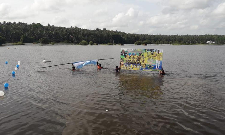 ലോകകപ്പ് ആവേശമായി വയലിലെ നീന്തൽ മത്സരം