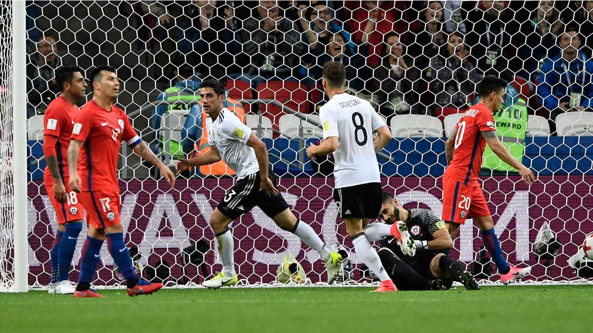 ആരാധകർ കാത്തിരുന്ന പോരിൽ, കളിതുടങ്ങി ചൂടുപിടിക്കുന്നതിനുമുേമ്പ യുവ ജർമനിയുടെ കണക്കുകൂട്ടൽ തെറ്റിയിരുന്നു. ചിലിയുടെ ആഴ്സനൽ താരം അലക്സിസ് സാഞ്ചസാണ് ആറാം മിനിറ്റിൽ തന്നെ ജർമൻ വലകുലുക്കിയത്. ആഴ്സനലിലെ സാഞ്ചസിെൻറ സഹതാരവും ജർമനിയുടെ വിശ്വസ്ത പ്രതിരോധക്കാരനുമായ ശോഖ്റാൻ മുസ്തഫിയുടെ പിഴവാണ് ഗോളിനവസരമൊരുക്കുന്നത്. ബോക്സിൽ നിന്നും മുസ്തഫി, സെബാസ്റ്റ്യൻ റൂഡിക്ക് നീട്ടിനൽകിയ ഗ്രൗണ്ട്പാസ് പിഴച്ചപ്പോൾ, പന്ത് അർതുറോ വിദാലിെൻറ കാലിൽതട്ടി ഇടതുവിങ്ങിലുണ്ടായിരുന്ന സാഞ്ചസിനടുത്തേക്കെത്തുകയായിരുന്നു. വിദാലിന് തന്നെ പന്തുനൽകി ബോക്സിലേക്ക് കുതിച്ച സാഞ്ചസിന് ബയേൺ മ്യൂണിക് താരം മുസ്തഫിയെ കബളിപ്പിച്ചു തിരിച്ചുനൽകി. ശരവേഗതയിൽ കുതിച്ച സാഞ്ചസ് ഗോളി ആന്ദ്രെ ടെർസ്റ്റീഗനെയും കടത്തി ഇടങ്കാലൻ ഷോട്ടിൽ പന്ത് വലയിലാക്കി. സാഞ്ചസിെൻറ കരിയറിലെ 38ാം അന്താരാഷ്ട്ര ഗോൾ. ഇതോടെ ചിലിയുടെ എക്കാലത്തെയും ടോപ് സ്േകാററായി സാഞ്ചസ് മാറി. മാർസലോ സലാസിെൻറ റെക്കോഡാണ് സാഞ്ചസ് മറികടന്നത്.