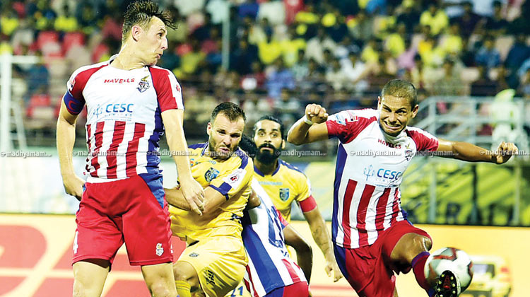 ഗോൾമുഖത്തെ കൂട്ടപ്പൊരിച്ചിലിനിടയിൽ കിട്ടിയ അവസരം പാഴാക്കാതെ തലയുമായെത്തിയ േപാപ്ലാറ്റ്നിച്ചിെൻറ ഹെഡർ കൊൽക്കത്തൻ താരം ജോൺ ജോൺസെൻറ കാലിലും ക്രോസ്ബാറിലും തട്ടി ഗോൾവര കടന്നു. കലൂർ സ്േറ്റഡിയത്തിൽ കാണികളുടെ എണ്ണത്തിൽ ഇൗ സീസണിലെ ഏറ്റവും വരൾച്ച കണ്ട ദിവസമായിരുന്നു ഇന്നലെ. സ്റ്റേഡിയത്തിെൻറ മുക്കാൽ ഭാഗവും ഒഴിഞ്ഞുകിടന്നു.