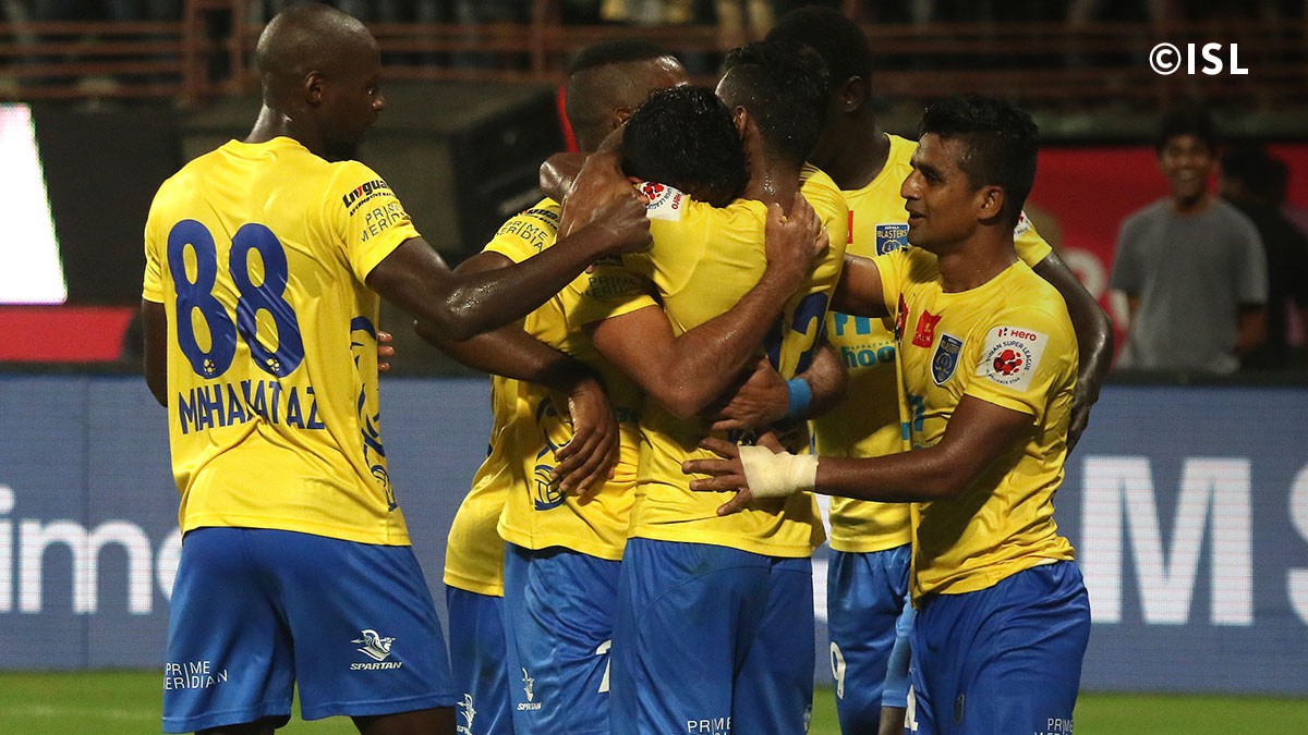 നേരത്തേ മലയാളി താരം മുഹമ്മദ് റാഫിയിലൂടെ ബ്ലാസ്റ്റേഴ്സ് ആദ്യഗോള് നേടി(1-0). 44ാം മിനിറ്റില് പോര്ച്ചുഗീസ് താരം സെറിനോയിലൂടെ കൊല്ക്കത്ത തിരിച്ചടിച്ചു (1-1). മെഹ്താബ് ഹുസൈന്റെ കോര്ണര് കിക്കില് തലവെച്ചാണ് മുഹമ്മദ് റാഫി ഈ സീസണിലെ രണ്ടാമത്തെ ഗോള് നേടിയത്. ഗോള് നേടിയ കേരളത്തിന്റെ ആവോശത്തിന് ആറ് മിനിറ്റിനകം കൊല്ക്കത്ത മറുപടി നല്കി. മത്സരത്തിന്റെ 34ാം മിനിറ്റില് ബ്ലാസ്റ്റേഴ്സ് ക്യാപ്റ്റന് ആരോണ് ഹ്യൂസ് പരിക്കിനെത്തുടര്ന്ന് പുറത്തുപോയിരുന്നു.