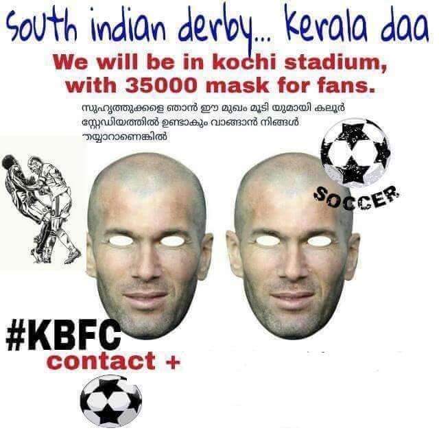 മത്സരത്തിൽ ഫ്രാൻസ് മുൻതാരം സിനദിൻ സിദാെൻറ മുഖം മൂടിയണിഞ്ഞ് മറ്റാരാസിയോടുള്ള കലിപ്പ് തീർക്കാനാണ് ഇക്കൂട്ടർ ആലോചിക്കുന്നത്. ഇതിനായി സ്റ്റേഡിയത്തിൽ ധരിക്കുന്ന സിദാെൻറ മുഖംമൂടിയുടെ ചിത്രവും നവമാധ്യമങ്ങളിൽ പ്രചരിക്കുന്നുണ്ട്. ആരാധകർക്കായി 35,000 മുഖംമൂടിയുമായി താൻ കൊച്ചി കലൂർ സ്റ്റേഡിയത്തിലുണ്ടാകുമെന്നാണ്ഒരാൾ ട്വീറ്റ് ചെയ്തിരിക്കുന്നത്.
